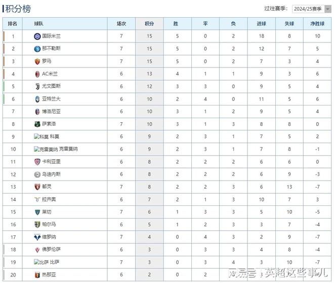 最新意甲积分榜:国米客场力克罗马晋级第一,那不勒斯意外失利!